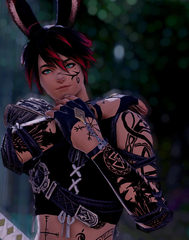 Ezren was born among the Rava tribe of Viera. He was trained as hunter and at the age of eighteen he received his facial tattoos. Soon after he left to explore the world. During his travels he learned to play instruments and found enjoyment in it. So he began offering his services as a bard and hunter wherever he went. He never stays in one place too long and keeps much hidden about himself and what all he has done over the last twenty two years.